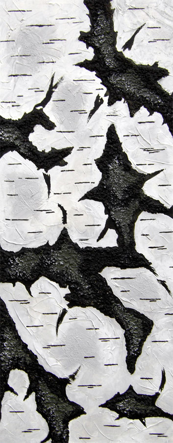 Birkenesque weiß 2010, Acryl auf Leinwand, Relief, 80 x 40 cm