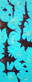 Birkenesque, türkis 2010, Acryl auf Leinwand, Relief, 80 x 40 cm
