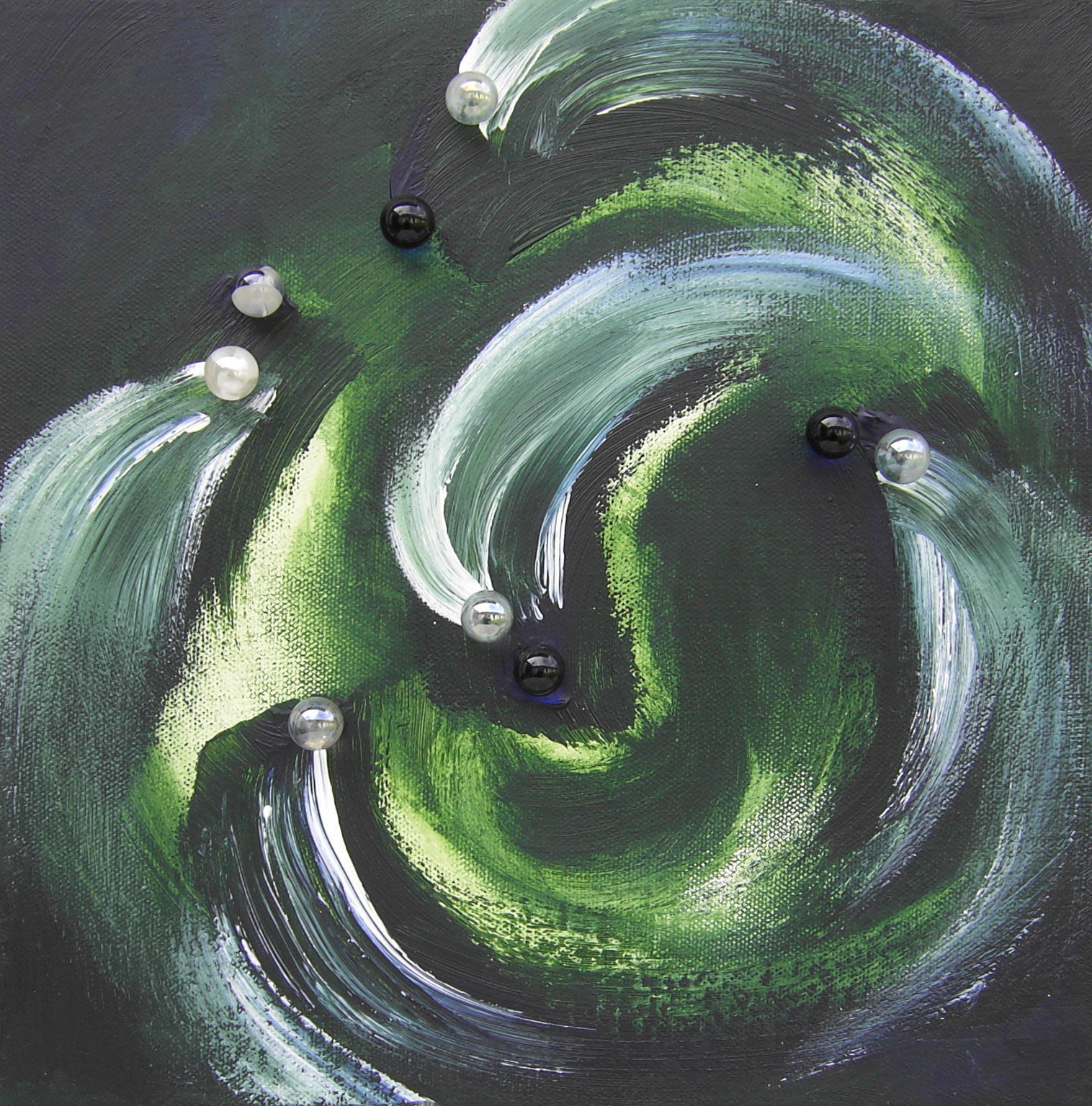Tanz der Murmeln 2010, 30x30 cm, Acryl auf Leinwand, Collage