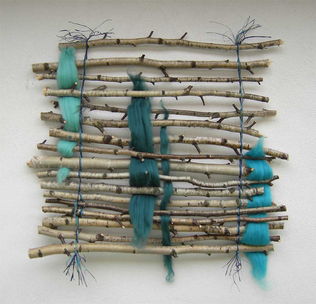 Blauer Traumfänger, 2014, ca. 70x70 cm, Birkenzweige, Filzwolle, Bast