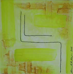 Der gefundene Faden, 2015, Acryl + Wollfäden, 50 x 50 cm, auf Leinwand