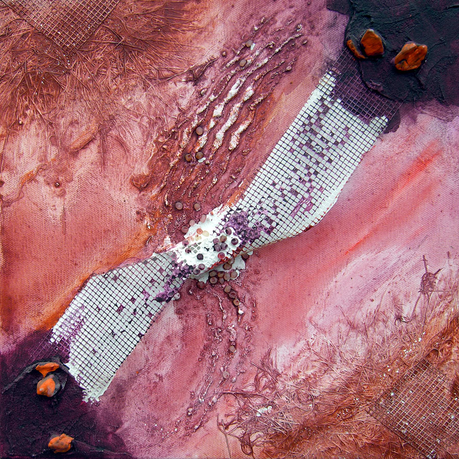 Rosa Bonbon 2006, Acryl auf Leinwand, Collage, 30 x 30 cm