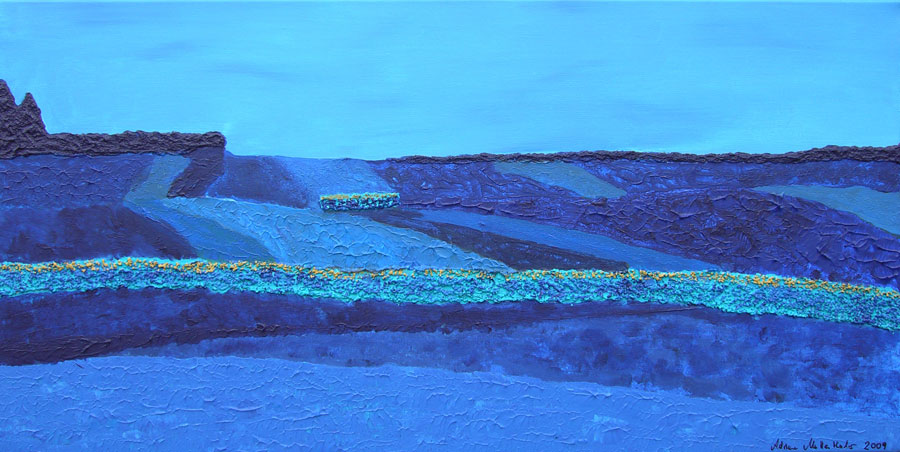 Blaue Felder 2009, Acryl auf Leinwand, Relief, 50 x 100 cm