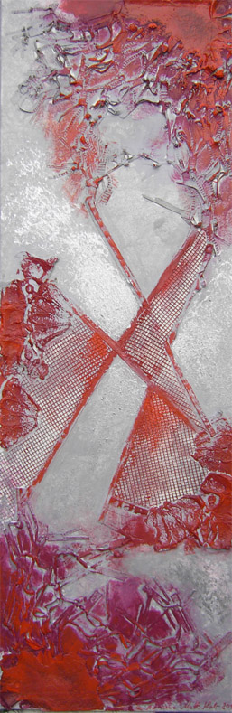 Roter Nebel, 2013, 40x120 cm, Materialcollage & Acryl auf Leinwand