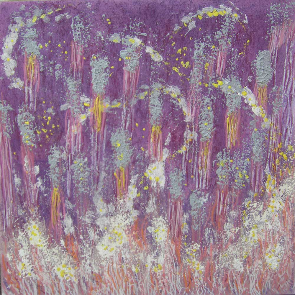 Tanz der Geckos, 2013, 50x50 cm, Mischtechnik (Pastellkreide, Acryl) auf Karton